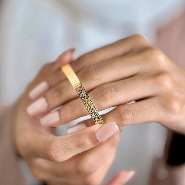 Titanium Steel round Cuff Bangle made with Titanium Steel also Having a Fine Quality & Durable design and also having Ayat ul Kursi engraved on it.